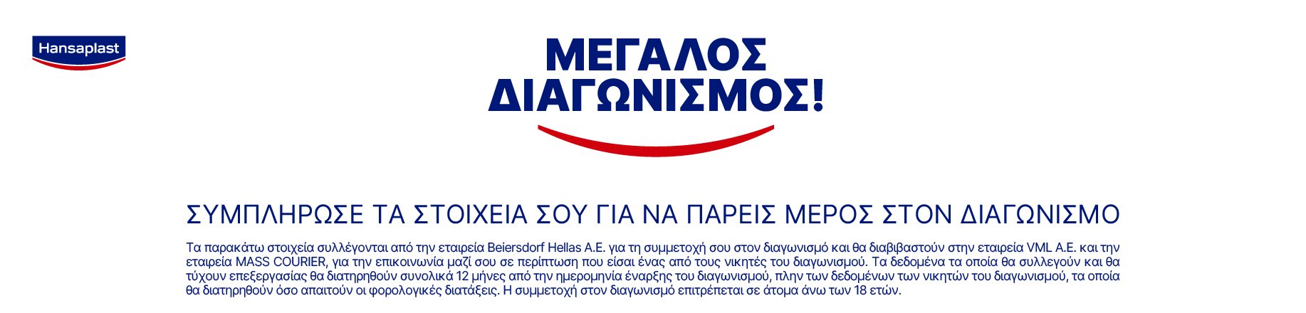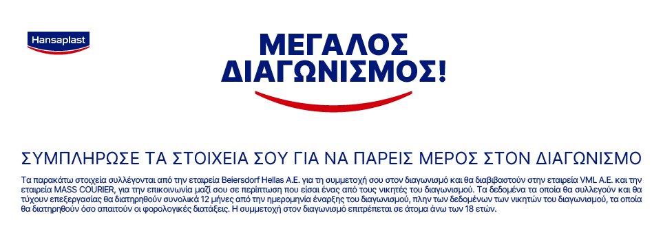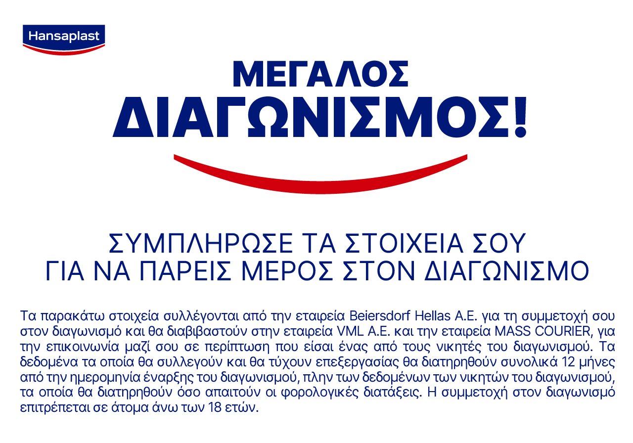 Δηλώνω ότι επιτρέπεται η χρήση και επεξεργασία εκ μέρους της διοργανώτριας εταιρίας «Beiersdorf Hellas ΑΕ» και της Διαφημιστικής Εταιρίας «VML Α.Ε.» των προσωπικών δεδομένων μου με σκοπό την ενημέρωση μου αποκλειστικά και μόνο για τις ανάγκες του εν λόγω διαγωνισμού και για το χρονικό διάστημα που ορίζεται στους