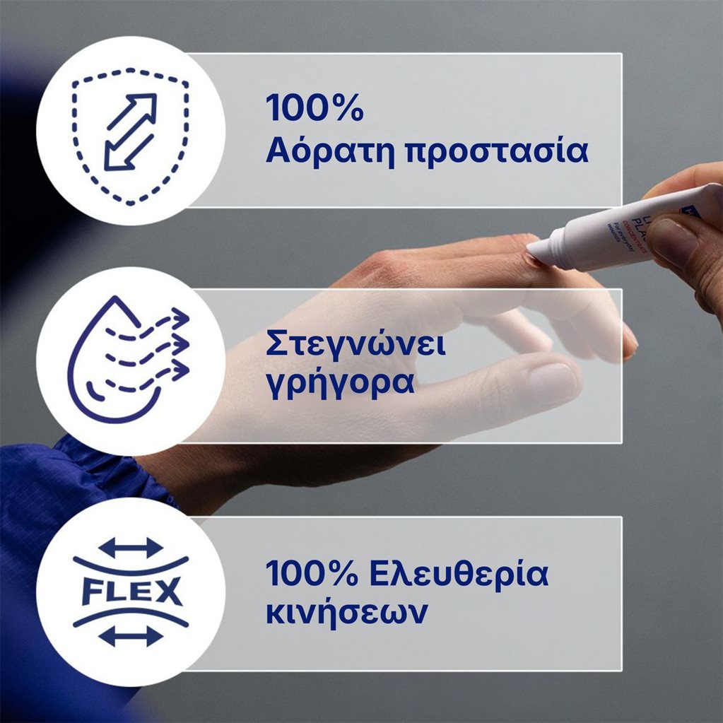 επίθεμα σε υγρή μορφή για την κάλυψη ακρίβειας και προστασία μικρών, επιφανειακών, ξηρών πληγών όπως εκδορές, κοψίματα και γδαρσίματα. Κατάλληλο και για σκασμένο δέρμα. Μετά την εφαρμογή το προϊόν στεγνώνει γρήγορα και δημιουργεί ένα αόρατο, ελαστικό, λεπτό και αδιάβροχο προστατευτικό φιλμ καλύπτοντας και προστατεύοντας την πληγή.